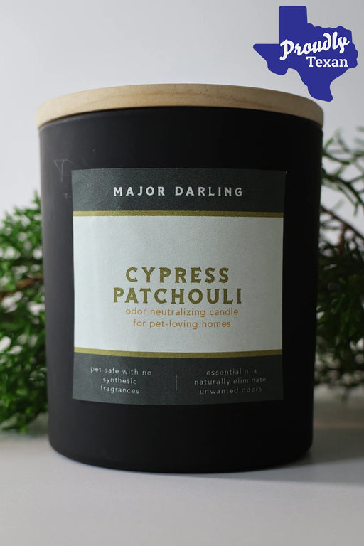 Major Darling Odor Neutralizing Cypress Patchouli Candle will bring back the pet-safe and fresh scent you've been missing from your home. With note...