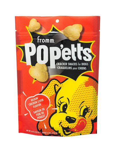 Description Ingredients GTD Analysis Fromm POPETTS Chicken Liver Dog Treats are bite-sized, cracker-like treats baked for maximum crunchiness a...